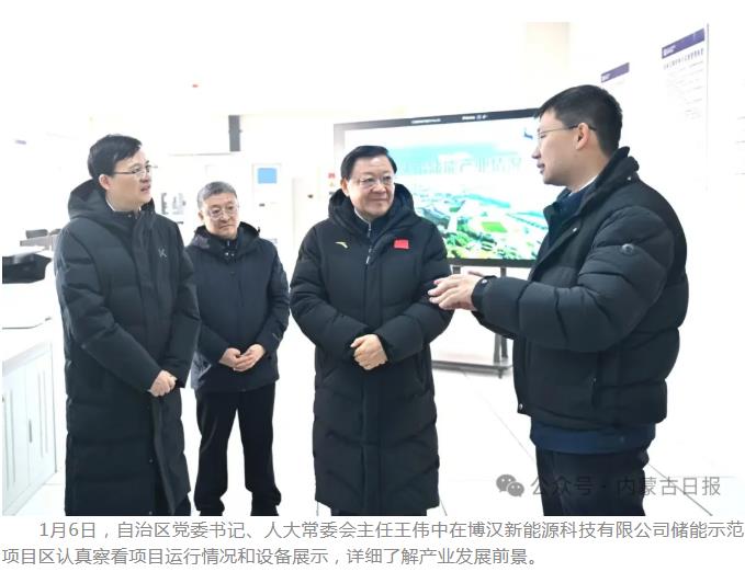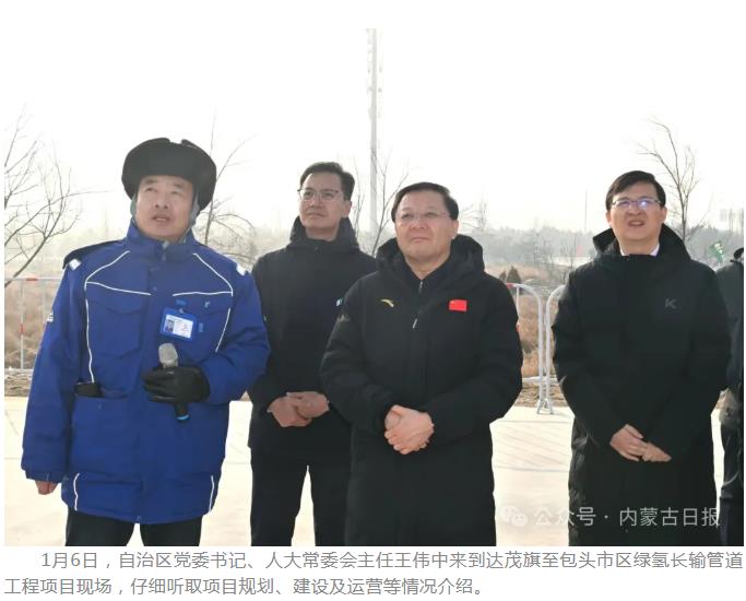 隆冬时节,达茂旗至包头市区绿氢长输管道工程项目现场仍是一片热火朝天的忙碌景象,王伟中来到这里,仔细听取项目规划、建设及运营等情况介绍。他说,要提速提效推进项目建设,抓好风光制氢等场景应用,大力促进新能源就地消纳,加快建设清洁低碳、安全高效的新型能源体系。在博汉新能源科技有限公司储能示范项目区,王伟中认真察看项目运行情况和设备展示,详细了解产业发展前景,鼓励企业加大科研投入,加快技术迭代升级,不断拓展国内外市场。调研期间,王伟中反复叮嘱有关地区和部门要围绕企业需求搞好服务,深度对接全国统一大市场,保持政策的连续性稳定性,大力营造市场化、法治化、国际化的营商环境,让各类企业在内蒙古办事顺心、投资放心、经营舒心、发展安心。