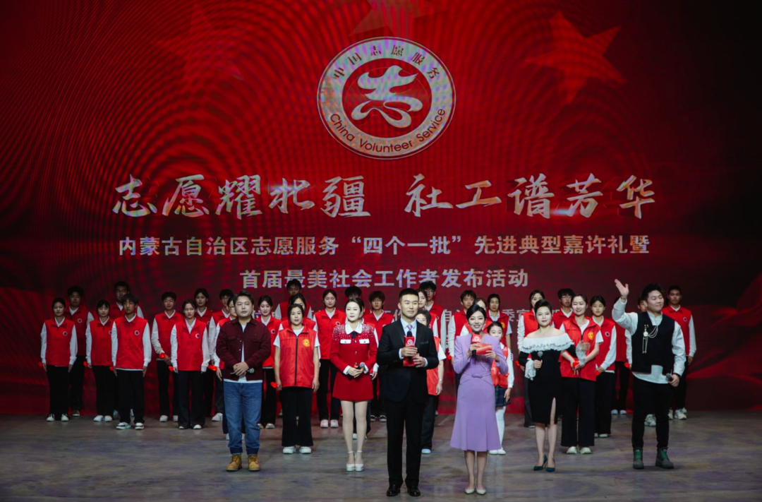 塞上情暖绘长卷,志愿星火耀苍穹。2025年11月19日,自治区党委社会工作部联合自治区党委宣传部主办的全区志愿服务“四个一批”先进典型嘉许礼暨首届最美社会工作者发布活动在呼和浩特举行。本次活动旨在弘扬“奉献、友爱、互助、进步”的志愿精神,营造全社会尊重、关爱社会工作者的浓厚氛围,为谱写中国式现代化内蒙古新篇章贡献社会工作力量。